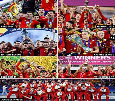 赛后,外媒统计了西班牙男女足现有冠军头衔: