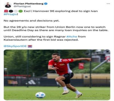 至于柏林联方面,他们仍在考虑从凯泽斯劳滕签下拉格纳-阿赫,他们此前的第一份报价已经被拒绝。