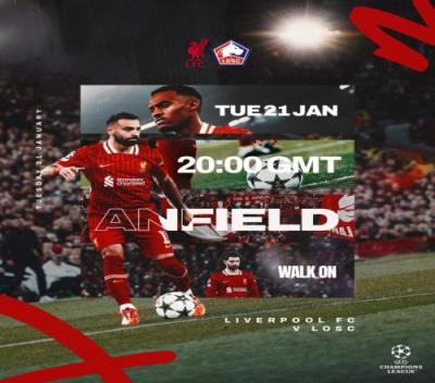 体育资讯1月21日报道宣称 北京时间明天凌晨4点,利物浦将在欧冠第7轮比赛中主场对阵里尔。
