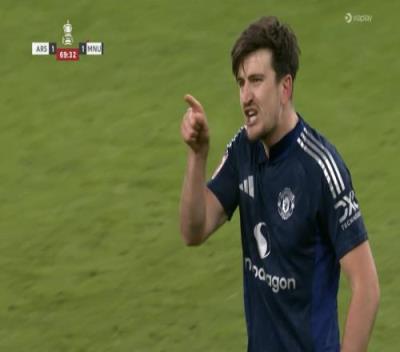 马奎尔认为哈弗茨跳水,追着哈弗茨骂,并且还怒斥裁判,但最终也只能无奈地笑了。