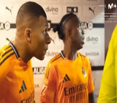 体育资讯1月5日报道宣称 在皇马2-1逆转战胜瓦伦的比赛中,Movistar+拍摄到了半场0-1落后时,姆巴佩和维尼修斯在球员通道中的对话。