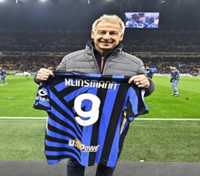 体育资讯1月20日报道宣称 在本轮意甲联赛的一场比赛中,国际米兰主场迎战恩波利,曾效力过国米的“金色轰炸机”克林斯曼来到了现场看球。