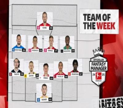后卫:泰特(法兰克福)、安东(多特)、奥尔班(莱比锡)、西迪利亚(弗赖堡)、弗林蓬(勒沃库森)