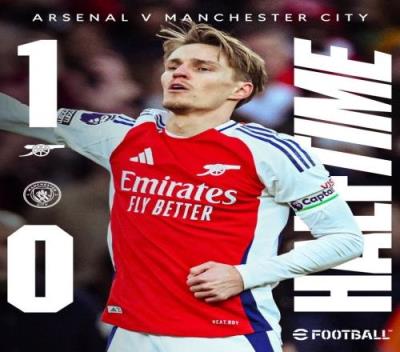 体育资讯2月3日报道宣称 阿森纳在本轮英超半场1-0领先曼城,厄德高为主队闪击建功。