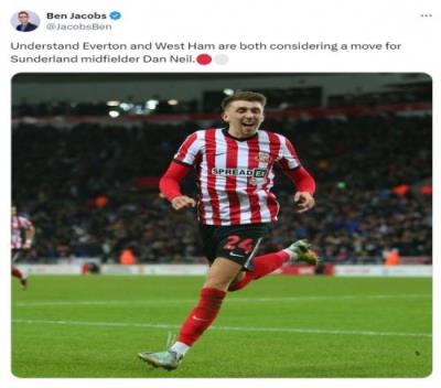 雅各布斯指出,桑德兰23岁中场丹-尼尔吸引了一些俱乐部的关注,埃弗顿、西汉姆都对这位英格兰球员感兴趣,考虑将其签至阵中。