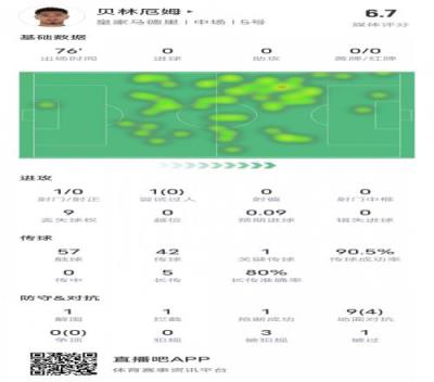 体育资讯12月23日报道宣称 西甲第18轮,皇马主场对阵塞维利亚,贝林厄姆首发出战,送出1次关键传球,传球成功率达到90.5%,评分6.7。