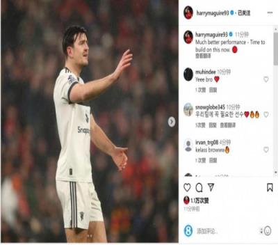 马奎尔在社交媒体上晒出自己的比赛照片,配文:“表现提升很多——现在是时候以此为基础再接再厉了。”