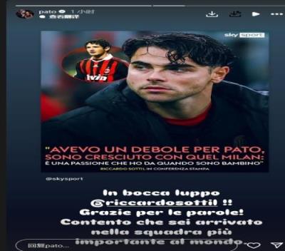 在社交媒体中,帕托发文对索蒂尔进行了激励。帕托写道:“祝你好运,索蒂尔!!感谢你的发言,为你加盟世界上最重要的球队感到高兴。”
