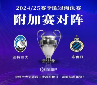 体育资讯01月31日报道宣称 2024/25赛季欧冠淘汰赛阶段附加赛抽签结果今日出炉,亚特兰大vs布鲁日,亚特兰大先客后主。