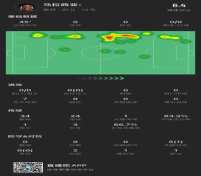 体育资讯12月22日报道宣称 英超第17轮,曼联主场对阵伯恩茅斯的比赛正在进行。下半场刚开始,发挥不佳的马拉西亚被换下。从数据统计中来看,马拉西亚上半场多项关键防守数据挂零,5次对抗仅成功1次。