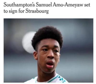 TA:圣徒18岁边锋阿米亚耶租借斯特拉斯堡,强制买断费700万欧