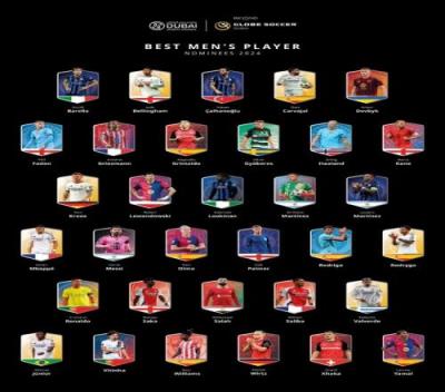 环球足球奖最佳男球员候选名单:C罗、梅西、亚马尔在列