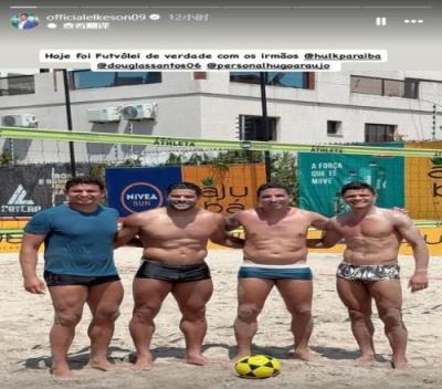 合影中除了艾克森、胡尔克之外,还有曾代表巴西获得2016年里约奥运金牌的道格拉斯-桑托斯以及一位名叫阿劳霍的训练师。