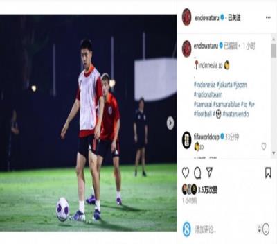 北京时间11月15日20点,日本将在亚洲世预赛第三阶段比赛中客场对阵印尼,日本队已经抵达印尼进行备战,远藤航社媒晒出球队的训练照片。