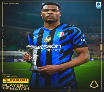 为国米攻入今天比赛首球,邓弗里斯当选与博洛尼亚之战MVP
