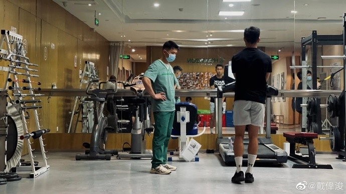 4月25日讯 深足球员戴伟浚更新了个人微博,他晒出了自己在健身房训练的照片,并写道:坚持。