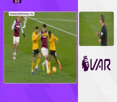 争议!狼队贝莱加德禁区内被踩脚后倒地,VAR介入后主裁仍未判点