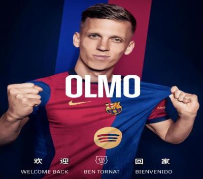 欧洲杯金靴加盟!官方:巴萨总价6200万欧签奥尔莫,解约金5亿欧
