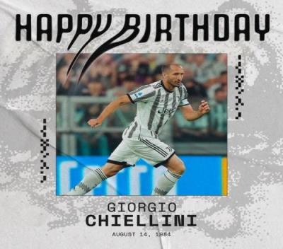 体育资讯8月14日报道宣 尤文图斯官推今日发文,祝贺了基耶利尼生日。