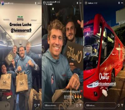 赛后,苏亚雷斯请马竞全队在自己的餐厅“Chalito”吃饭,前队友纷纷晒照感谢苏牙。科克:谢谢@苏亚雷斯@Chalito。马科斯-略伦特:谢谢@苏亚雷斯❤️@Chalito