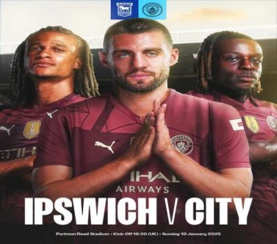 体育资讯1月19日报道宣称 北京时间明天凌晨,曼城将在英超第22轮比赛中客场对阵伊普斯维奇。
