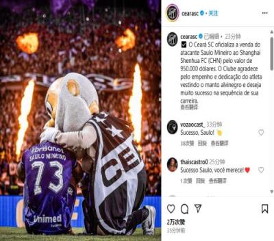申花2025首签!官方:申花签下巴西前锋米内罗,转会费95万美元
