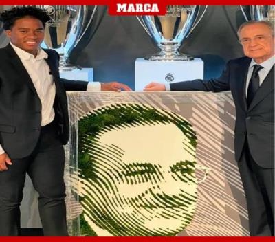 美洲杯期间,恩德里克看到了这幅画像,这位前锋感到惊讶,考虑到他即将亮相皇马,他决定包装这幅画像,并作为礼物送给弗洛伦蒂诺。