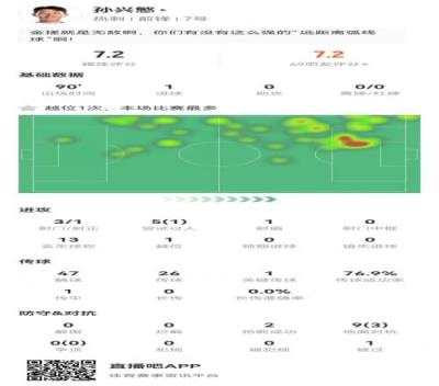 体育资讯12月20日报道宣称 热刺在本轮联赛杯4-3险胜曼联,孙兴慜本场数据如下: