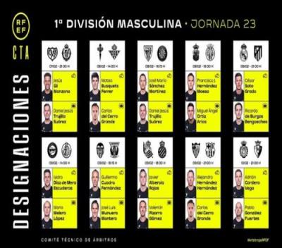 西甲第23轮裁判安排:格拉多执法马德里德比,埃尔南德斯执法巴萨