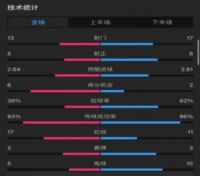 控球率:38%-62%