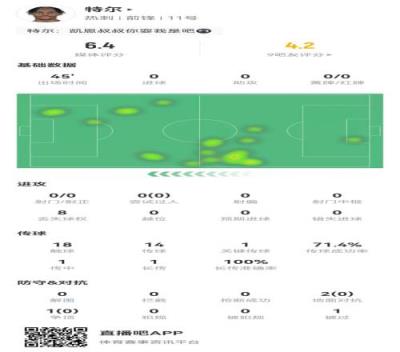 体育资讯2月7日报道宣称 热刺在本轮联赛杯0-4不敌利物浦,花费了1000万欧租借费的新援特尔首秀数据如下: