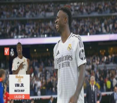 体育资讯11月9日报道宣称 2024-25赛季西甲第13轮,皇马4-0战胜奥萨苏纳。本场比赛维尼修斯首发出战,上演帽子戏法,赛后被评为全场最佳球员。