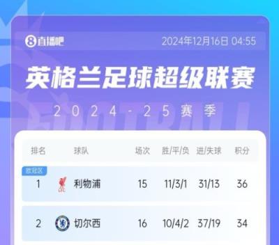 12月30日,利物浦5-0大胜西汉姆;12月31日,切尔西0-2伊普斯维奇,两连败后掉到第四,与榜首的差距拉到10分。