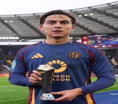 体育资讯12月22日报道宣称 在意甲第17轮比赛中,罗马5-0大胜帕尔马。赛后,迪巴拉当选意甲官方颁发的全场最佳球员。