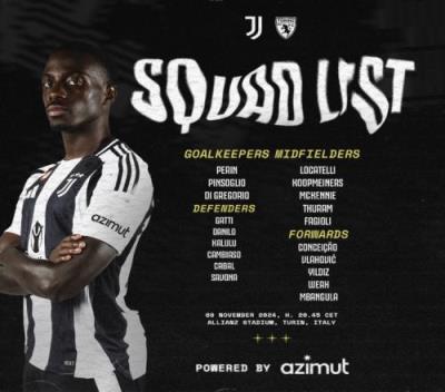 尤文都灵德比名单:小孔塞桑、DV9在列,冈萨雷斯、路易斯缺席