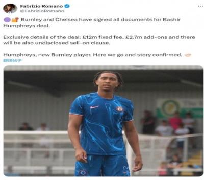 罗马诺指出,伯恩利已经与切尔西签署了亨弗里斯转会交易的所有文件,球员的固定转会费为1200万英镑,浮动金额为270万英镑,协议中将包含转售分成条款。