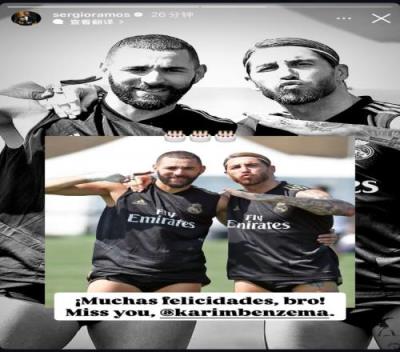 拉莫斯晒照祝本泽马37岁生日快乐:祝贺兄弟,想念你!