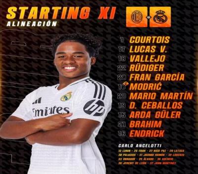 皇马vs米兰首发:恩德里克首秀、居勒尔出战,奇克、丘库埃泽出战