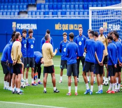 弗里克带领现有球员进行了训练,包括库巴西,这一周他一直在带着面具训练。自从对阵皇家社会的比赛后,巴萨一直没有休息,周一,首发球员进行了恢复训练,替补球员进行了高强度训练,周二的训练则比较轻松。