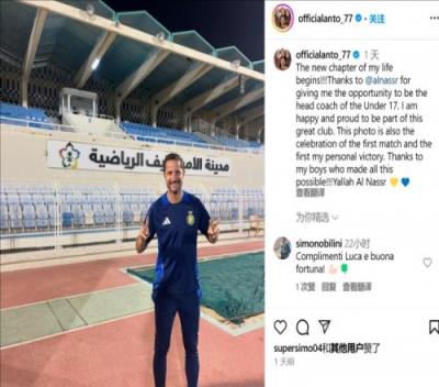 体育资讯11月13日报道宣称 通过社交媒体,米兰旧将安东尼尼自宣执教利雅得胜利U17梯队。