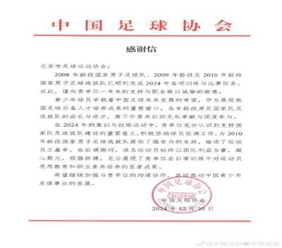 在2024年的集训与拉练活动中,各单位充分认识到支持国家队及选拔队建设的重要意义,积极协助球员征调工作,为各年龄段国家队及选拔队提供了强有力的支持,输送了大量潜力新星。希望未来继续加强与各单位的沟通协作,共同推动中国青少年足球事业的发展。