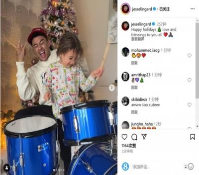 林加德在社交媒体上晒出抱着打架子鼓的女儿的照片,并配文:“节日快乐,向大家致以爱和祝福。”