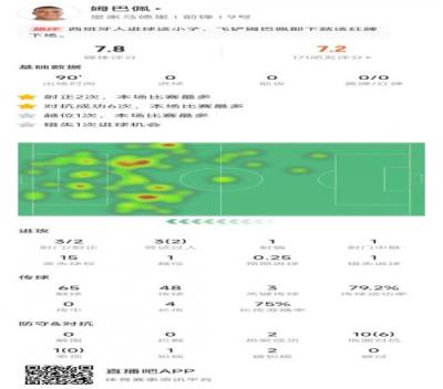 姆巴佩本场比赛数据: