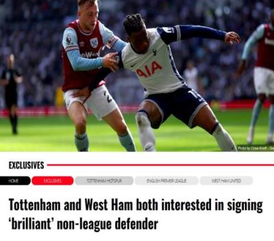 英媒:热刺、西汉姆联均有意非联赛19岁后卫杰克泰勒