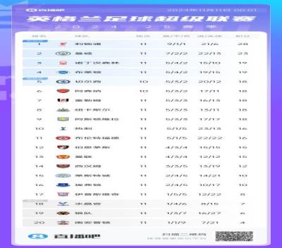 积分榜上,曼联净胜球归零,积15分只差第4布莱顿4分,纽卡赢球后有5队同积18分,伊普斯维奇首胜逃离降级区。