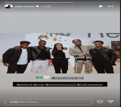 体育资讯12月14日报道宣称 皇马后卫米利唐更新社媒动态,晒出皇马队内巴西球员的合照。