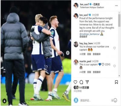 孙兴慜赛后在社交媒体上写道:“为小伙子们今晚的表现感到骄傲,球迷们的支持也很棒。还有更多的事情要做,次回合比赛即将到来。但我们所有的思绪和力量都与你同在,本坦库尔。”