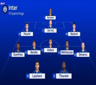 天空体育预测国米下场欧冠首发:劳塔罗搭档图拉姆,邓弗里斯在列