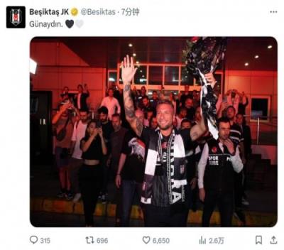 体育资讯7月13日报道宣称 贝西克塔斯更新多条社媒动态,晒出新援因莫比莱的照片。