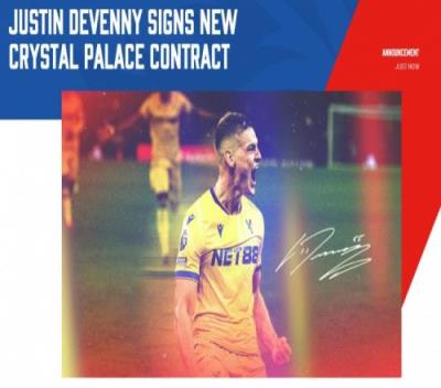 体育资讯1月14日报道宣称 官方消息,水晶宫与21岁中场球员贾斯汀-德维尼续约至2027年。